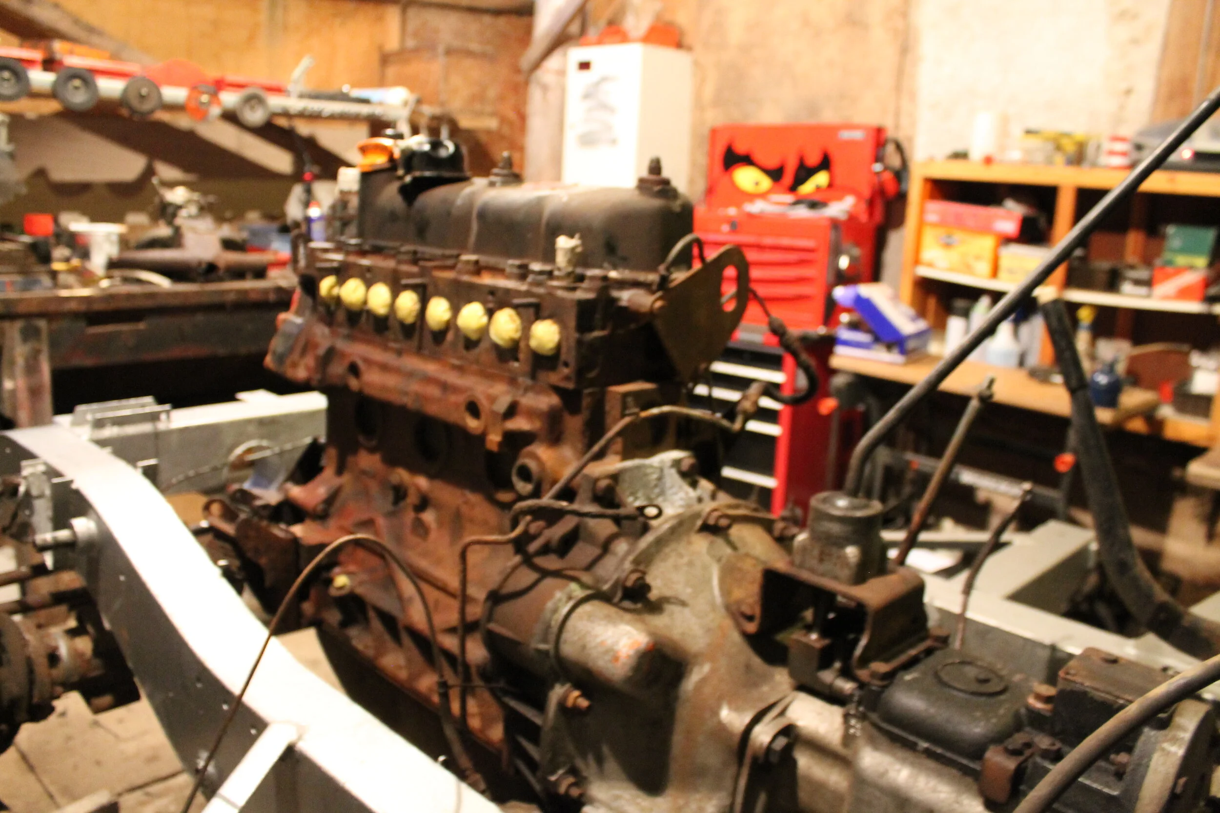 The freeze core plugs are replaced as they where corroded from sitting for years. The manifold, cracked from excessive corrosion is replaced. The engine block is sand blasted and painted. The carb is rebuilt and tuned along with any other ancillaries that are worn.